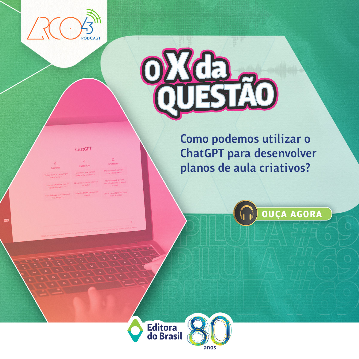O Arco43 Podcast é uma publicação da Editora do Brasil S/A. As opiniões expressas no programa são de responsabilidade dos respectivos convidados e não expressam necessariamente a opinião da empresa ou de seus colaboradores.